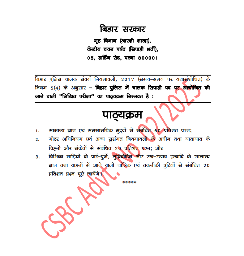Syllabus for Driver Constable (Advt. No.- 02/2025)
